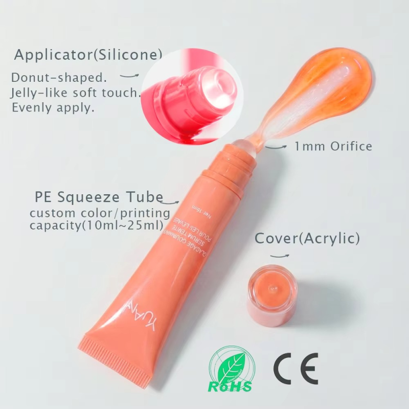 New Trend Valentine Special Plastic Squeeze Lip Balm Tube Lip Gloss Tube with Jelly-like Soft Donut-shaped Silicone Applicator